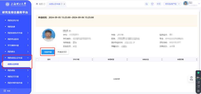 三、申请方式:“研究生综合服务平台”中的“成绩认定申请”。